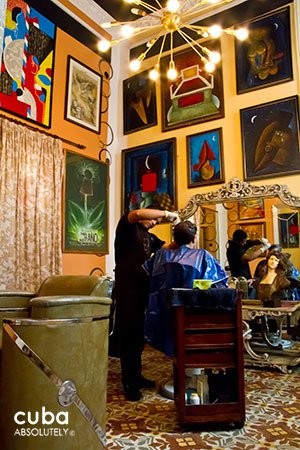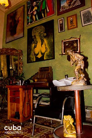Established about eight years ago, Arte Corte is a hairdressing salon that is also an “interactive museum” where the customer, while comfortably seated in a hundred year-old chair awaiting their turn, may view antique scissors, razors, mirrors, vials, shaving brushes, combs, brushes and advertisements, along with original paintings and drawings by Cuban artists, all focusing on the topic of hairdressing.