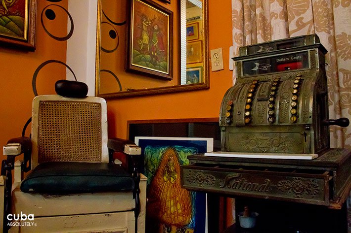 This interest in his trade led Papito to start his unusual collection of hairdressing artefacts which are exhibited at his private salon, a sort of “interactive museum” where the customer comfortably seated in a hundred-year-old chair may view antique scissors, razors, mirrors, vials, shaving brushes, combs, brushes and ads as well ash original paintings and drawings by Cuban artists on the topic of hairdressing. Papito proudly displays these paintings on the walls of his salon: Artecorte (Cutting Art). He is convinced that these pieces constitute the beginnings of what one day will become the first Hairdressing Museum in Cuba.
