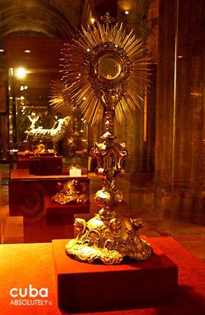 The nave also houses the Museum of Sacred Art, a center for art exhibitions to the south side of the nave, with paintings by José Nicolás de la Escalera and Vicente Escobar, missals with tortoise shell, ivory and hammered silver covers, polychrome wooden images and early marriage registries (one for whites and the other for mestizos and blacks). The armchairs and lectern used by Fidel Castro and Pope John Paul II during the latter’s January 1998 visit to the island are also here.