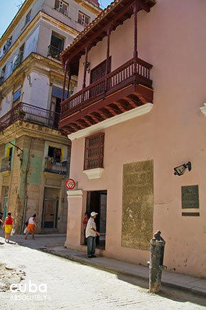 On the corner of Obrapía and San Ignacio Streets, one block west of Mercaderes, stands one of the oldest and best preserved homes in Havana, and despite its relatively simplicity, one of its most striking. The most significant element of its façade is the notable upper-story balcony on the corner, a perfect tower-lookout that affords a magnificent view of the two streets where the house is located.