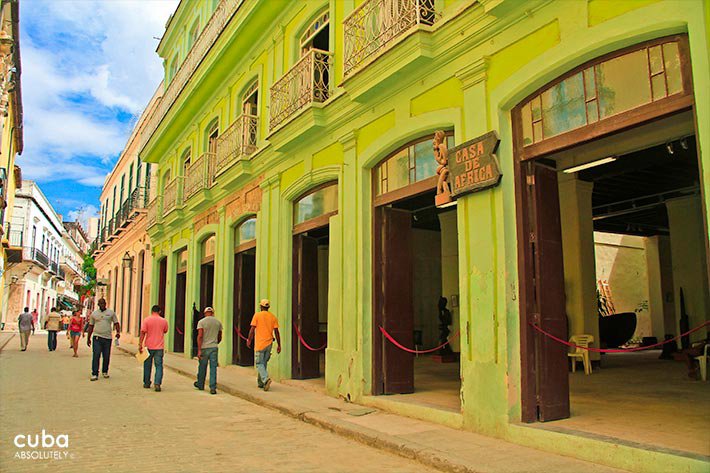 • The 17th-century townhouse mansion at Obrapia #157 originally served as a shop selling snuff. Today, as the House of Africa, it displays objects of different African cultures, especially ivory carvings, ritual and decorative masks, musical instruments, weapons, tools, and textiles and clothes, many of which are gifts received by Castro from African countries.