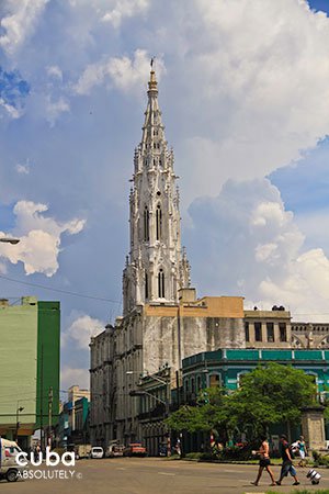 Known by many as Iglesia de Reina, Cuba’s tallest and perhaps most beautiful church rises in the midst of the urban landscape as one of the most accomplished religious constructions in Cuba in terms of architecture. Its notable 77-meter tall tower, topped by a 4-meter tall bronze cross, with 32 gargoyles and a variety of statuettes. The inside is lit by 69 spectacular stained-glass windows. It can be seen from several spots in Havana.