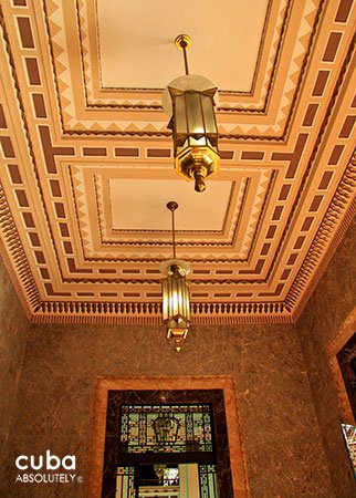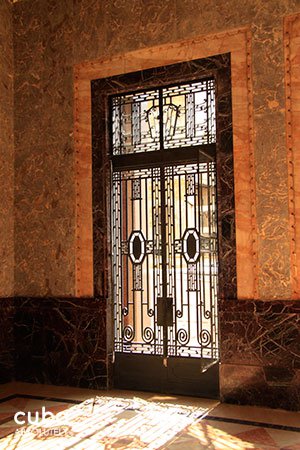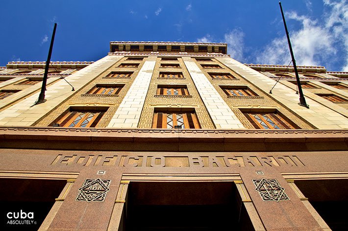 Influenced by Catalan modernism, its ziggurat-like design uses tiles as decoration, which gives the building a unique look. It has 12 floors, of which the bottom five were used as office space for rent. Each of these floors was divided into 34 units, in addition to a number of meeting halls and a bar. The lobby is decorated from floor to ceiling in modern style with marble of different colors, imported from several European countries, while the façade is covered with red Bavaria granite. According to suppliers, the decoration of the building includes granite and marble from all over Europe. On the top floor, the exceptional brick tower, topped by the company’s bat emblem, offers a magnificent view of Old Havana.