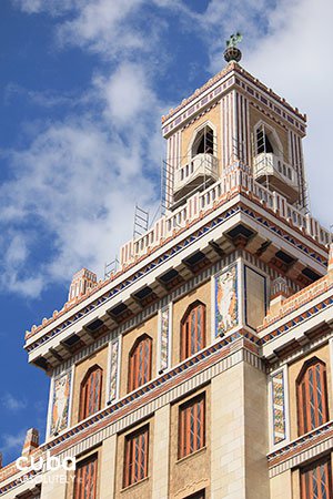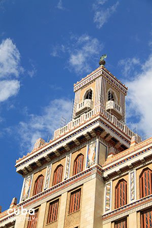 This National Architecture Award-winning building was renovated in 2001 and currently houses offices from a number of Cuban and international companies. For the best view of this edifice, go to the rooftop terrace of Hotel Plaza, across the street.