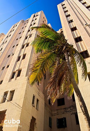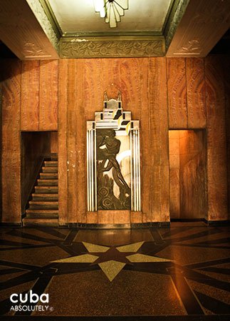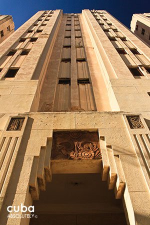 • It is considered the first Cuban skyscraper as it reproduces, on a modest scale, the model of tall New York buildings, conceived with layered fittings in order to let air and light in. The linear and geometric lines of the façade are enhanced by the Moroccan red marble of the interior, the decorative large flowerpots, ceiling lamps and doors to lifts and apartments, and “Time,” a relief sculpture made in nickel silver by Cuban artist Enrique García Cabrera, whose home at 22nd St. in El Vedado is also a beautiful example of Art Deco style. The López Serrano Building was the property of the heirs to José López Serrano, owner of the La Moderna Poesía bookstore, who committed suicide in 1921 because he felt he was bankrupt regardless of having eleven million dollars in his personal bank account.