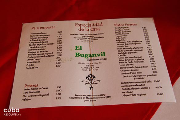 The food is uncomplicated in general; the Lomo ahumado (smoked pork loin) is excellent as is the Cordero al vino (lamb cooked with wine) and Pescado a la plancha (grilled fish). If there are six carnivores at the table you have to try the roast pig (Cerdo asado), which is good value at CUC 10 each. Desserts depend on the time of year but can usually be relied upon to include Flan de leche, made in house (custard), and a range of natural ice creams, such as pineapple, mamey (marmalade tree) and cocoa.