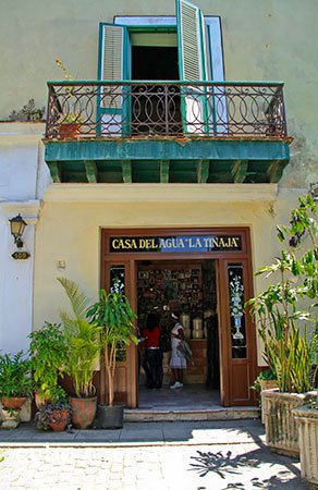The quaint cobbled section of Calle Obispo between Calles Oficios and Mercaderes is lined with the oldest buildings in Havana. The row of 17th-century townhouse mansions includes the tiny La Casa del Agua La Tinaja, which can be easily overlooked given its small size. The shop offerss to pedestrians water that is filtered in large earthenware jars called tinajas and originally supplied by the two aqueducts built in Havana. There is no fixed fee for the water and is totally voluntary.