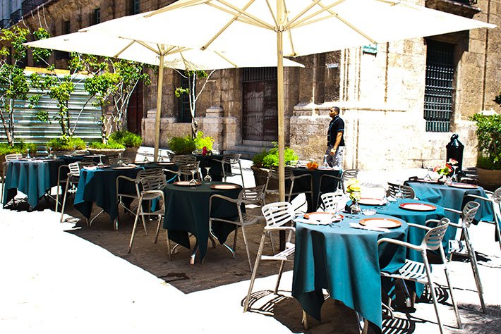 • La Dominica enjoys a great setting opposite the restored Colegio Universitario de San Gerónimo and the Palacio de los Capitanes Generales. Patio tables are the order of the day outside of the heat of summer when the formal interior offers a chilled alternative. The food and service are both good with pizza and pasta heavily featured. Not quite as tasty as A Prado y Neptuno, and don’t ever expect the credit card machine to work, but almost as good as it gets in Old Havana.