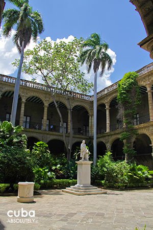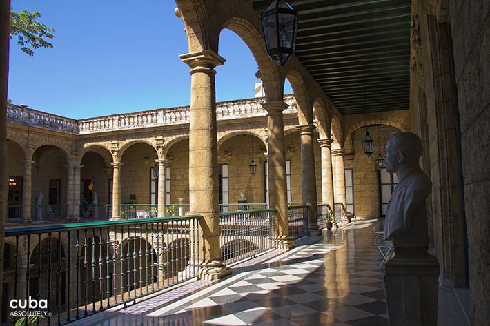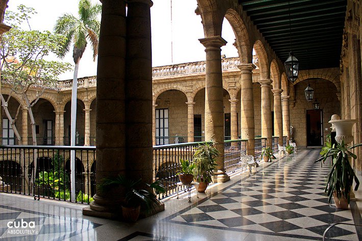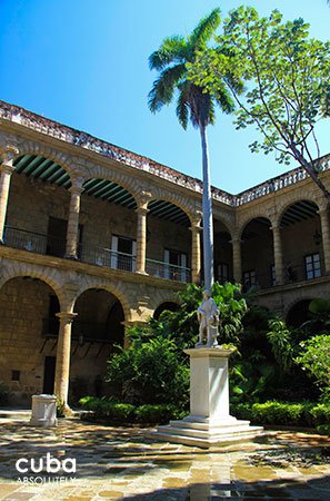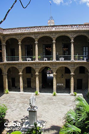 The two-story limestone building was not completed in its final form until 1835, when Governor Miguel Tacón moved in. The façade is adorned with the shield of the city and features a deep loggia supported on thick columns. Peacocks roam the tree-filled courtyard, where a Carrara marble statue of Christopher Columbis presides.