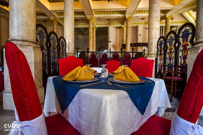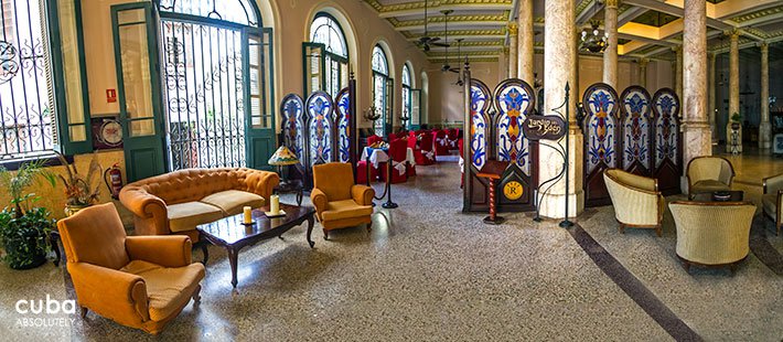 • The beautifully restored Hotel Raquel is another testament to the wonders being performed by Habaguanex, the Historian’s Office commercial wing. Opened in 2009, the stained glass ceiling simply takes your breath away. Magnificent. The Jardín del Edén (Garden of Eden) restaurant offers traditional Jewish dishes and is set inside the Hotel Raquel. It is next to the Lejaim (toast to life) Lobby Bar and is very much art Nouveau in its décor. Blue predominates on the screens as a colour of paramount importance in the ancient Hebrew culture, as well as some traditional symbols, such as the Star of David and the Menorah or sacred seven-branched candelabra.