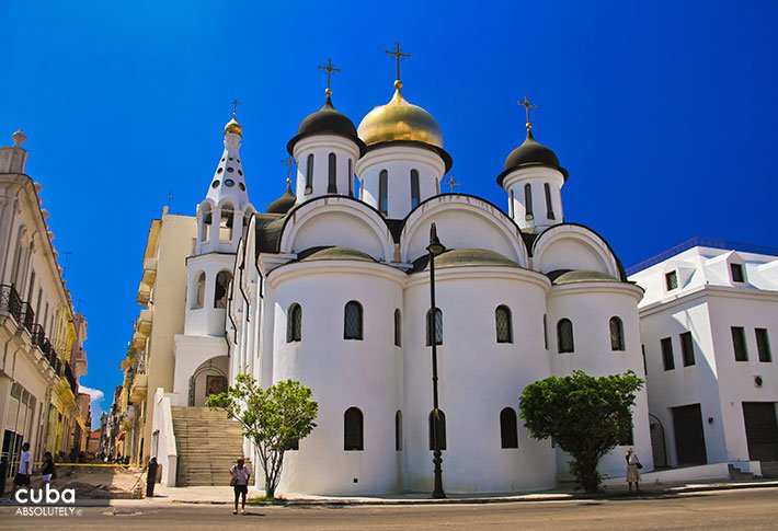 The roof of the San Nicolás de Mira Temple is covered with red tiles and the façade features a number of Bizantine icons, thus combining Cuban elements with Greek style.