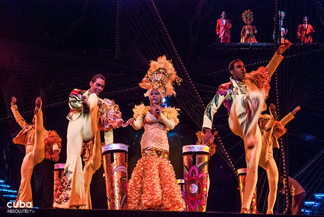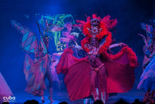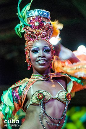 Every town in Cuba has at least one cabaret espectáculo–‘show’–featuring flamboyant cabaret routines highlighted by a never-ending parade of mulata (mixed-race) showgirls sashaying and shaking in sequined bikinis, ruffled frills, sensational headdresses, and feathers more ostentatious than peacocks’. Jugglers, acrobats, even comedians are often featured, as are solo singers who perform everything from boleros to romantic opera–all a legacy of the 19th-century Cuban music halls that were the modern cabarets’ antecedent.